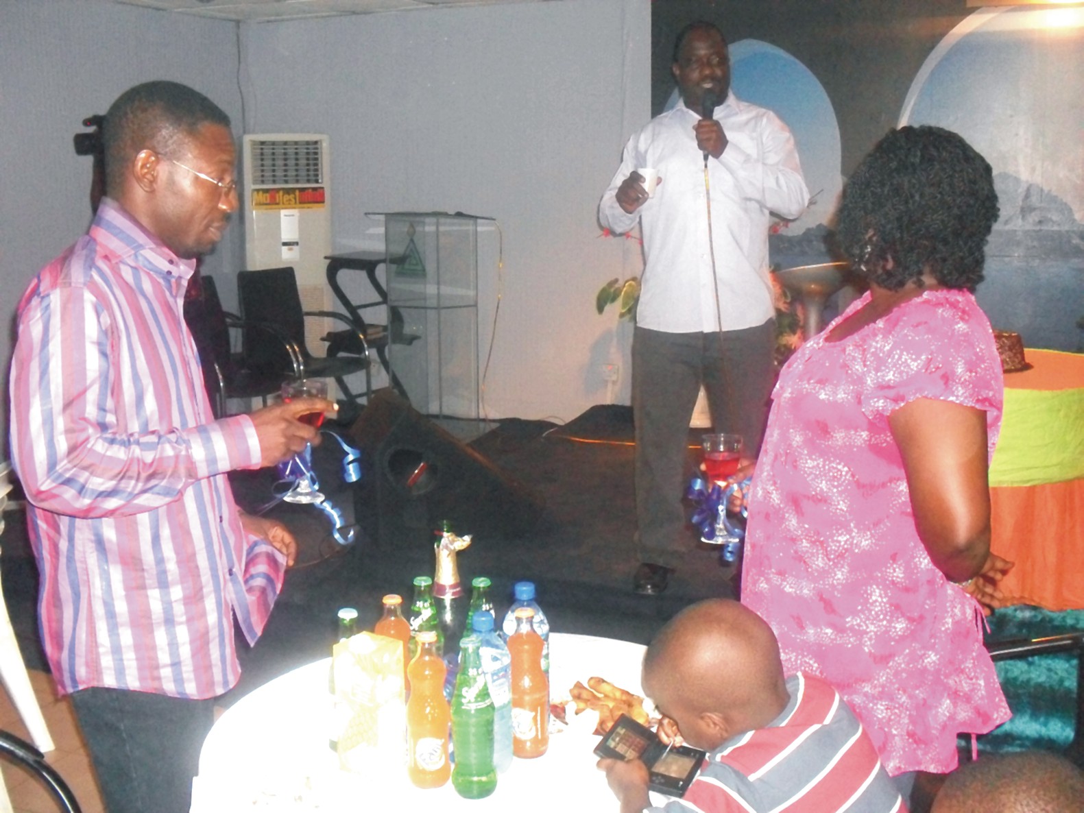 Mr Tade proposing the Toast while the Oyes look on