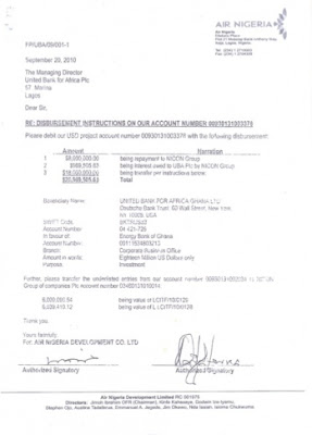He even diverted the $40 million AfRExim loan granted to Air Nigeria for general purpose to acquire Energy Bank of Ghana. (See attached copy of telex showing the transfer of approximately $26 million to a UBA London account and the transfer instruction on the acquisition of Energy Bank of Ghana).