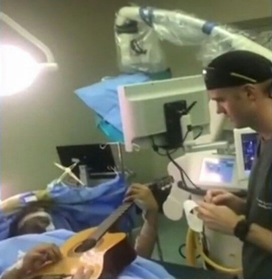 According to one of the neurosurgeons, Dr. Rohen Harrichandparsad, the playing of the guitar helped guide surgeons in their delicate task whilst ‘preserving natural pathways’.